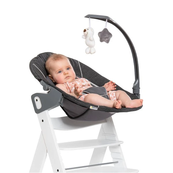 Das ideale Newborn-Set. Mit dem kuscheligen Alpha Bouncer Deluxe können die mitwachsenden hauck Holzhochstühle Alpha+ bzw. Beta+ bereits ab der Geburt genutzt werden. Neugeborene fühlen sich hier besonders wohl, denn sie können auf Augenhöhe am Familiengeschehen teilhaben.