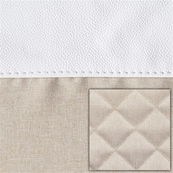 | Außenstoff 261: Leinen sandbeige gesteppt mit Lederrand weiß | Innenstoff 180: weiß mit Flauschpunkten beige |