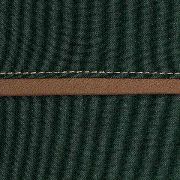 Außenstoff 647: Leinen dunkelgrün mit Lederwulst hellbraun |