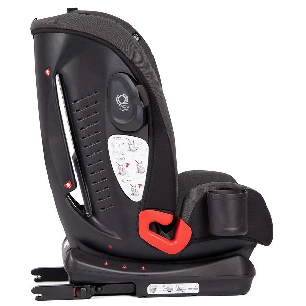 - 9-fach verstellbare ISOFIX Konnektoren, Top Tether und der Fahrzeuggurt sorgen für eine sichere Installation im Fahrzeug