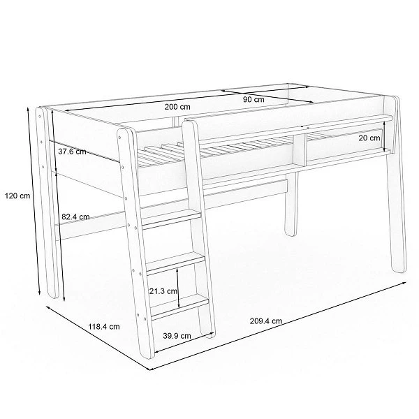 - Hochbett mit Liegefläche 90 x 200 cm