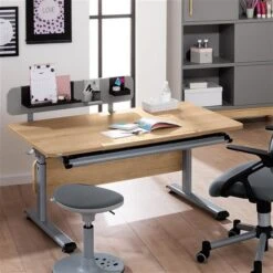 Ein perfekter Platz für die Hausaufgaben im angesagten Design – der Paidi Diego Schreibtisch in Eiche-Nebraska-Nachbildung unterstützt jeden Lerntyp mit praktischen Ausstattungsmerkmalen.