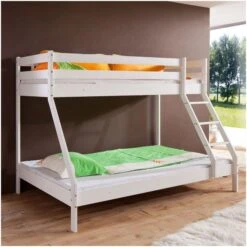 - Etagenbett MIKE aus massiver Buche, weiß lackiert