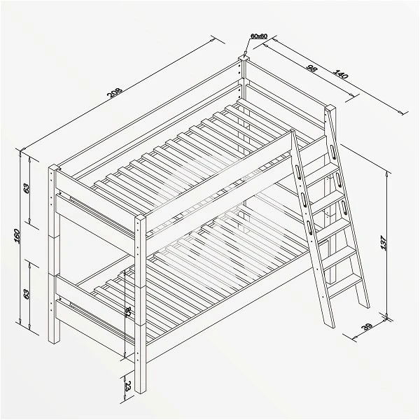 - Etagenbett STEFAN aus massiver Buche, klar lackiert