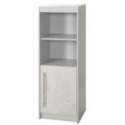Das roba Standregal Maren 2 verfügt über 2 offene Fächer und zwei weiteren Fächern hinter einer Tür. Der Stauraum lässt sich für Kinderspielzeug oder Kinderkleidung nutzen. Die Tür ist mit einem hochwertigem Edelstahl-Relinggriff ausgestattet.