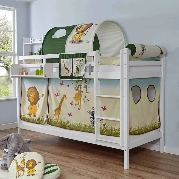Das Ticaa Rene Etagenbett bietet einen sicheren Schlafplatz auf beiden Ebenen. Es ist aus massiven Buchenholz gefertigt und besitzt oben rundherum einen Fallschutz sowie eine Leiter.